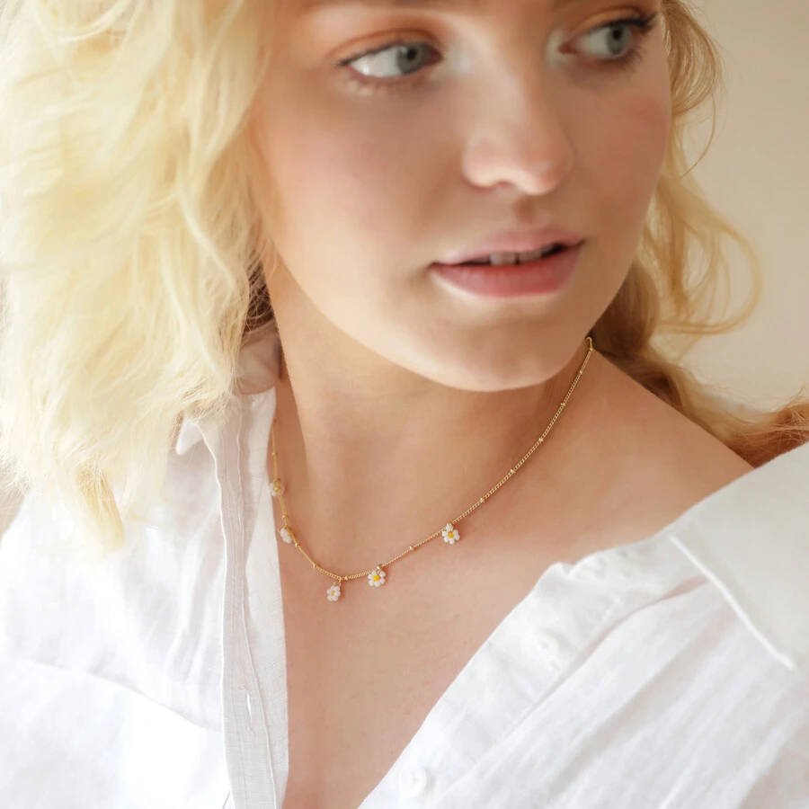 Add a pretty floral touch to your summer style with this dainty daisy chain necklace.