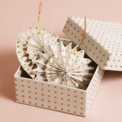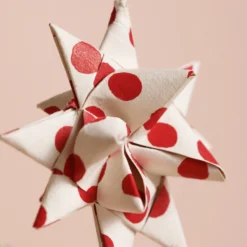Afroart Set Of 2 White And Red Polka Dot Folded Star Hanging Decorations