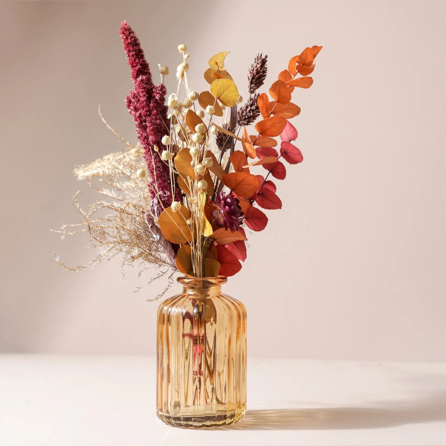 If you adore festive styling that stands out, this mini-arrangement including eucalyptus, flax and helichrysum is ideal for you.