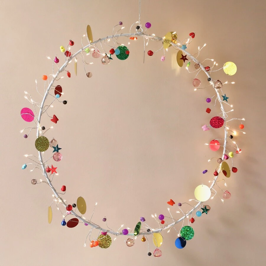 This funky wreath bursting with different shapes, colours, and ornaments is perfect for a lover of unique homeware.