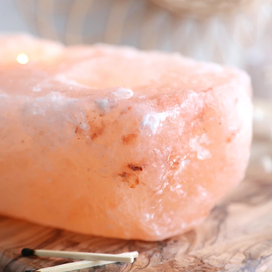 A salt crystal remedy for daily relaxation and positivity, this all natural tealight holder is made from Himalayan rock salt, with space for two traditional sized tealights.