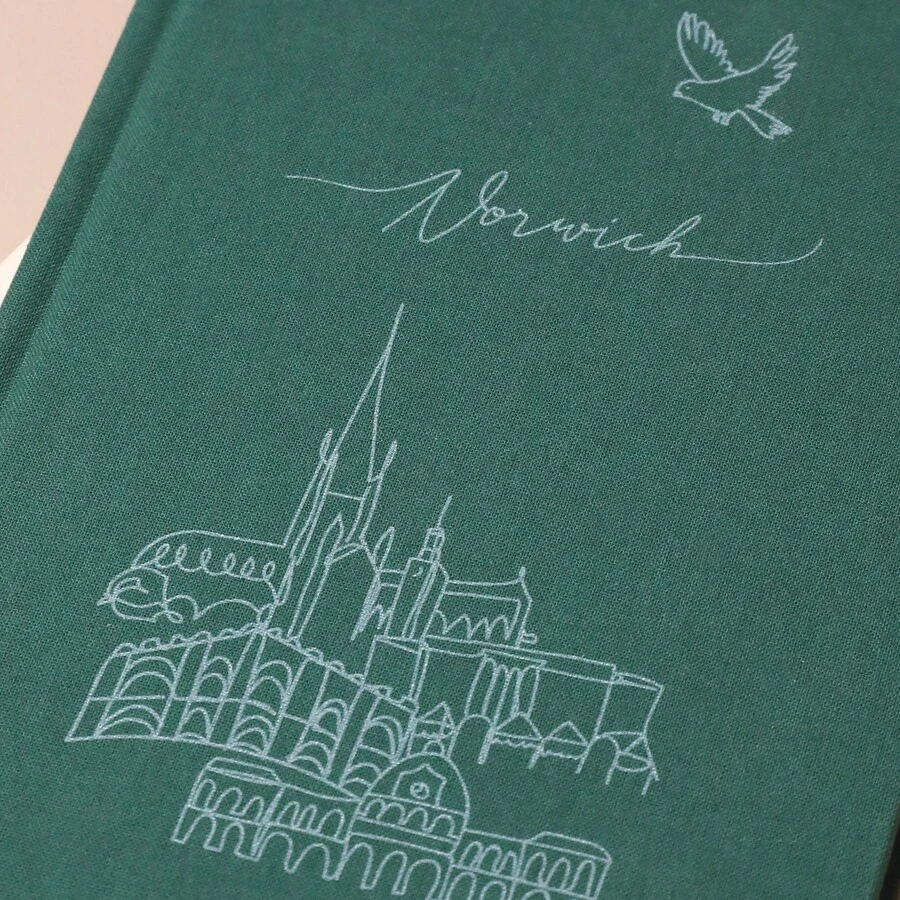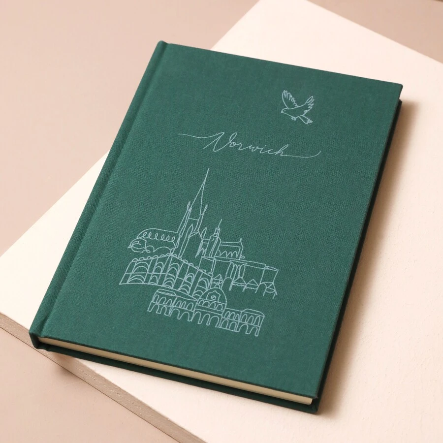 Looking for a memento of your favourite city? This gorgeous green notebook is printed with ‘Norwich’ on the cover in script above a sweet and simple illustration of the city’s skyline. The edges of the notebook are finished in polished gold, giving this journal a sleek look, ideal for taking on your day-to-day.