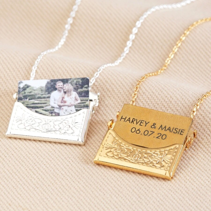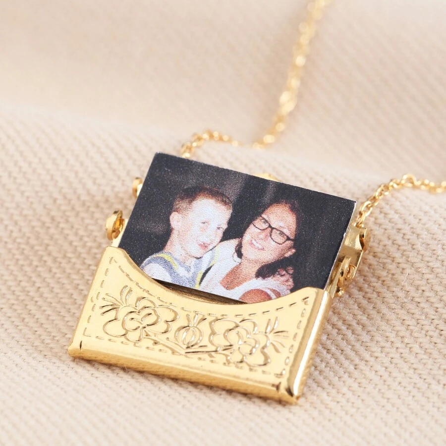 This gorgeous vintage style envelope necklace is the perfect thoughtful present for someone special, with your very own secret photo charm hidden inside for them to keep close to their heart.