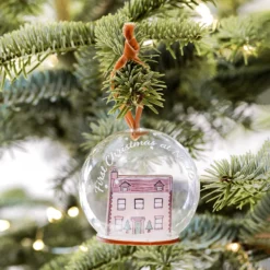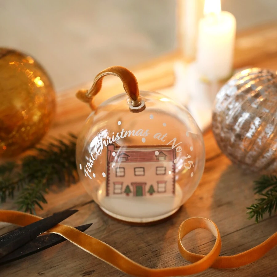 This glass dome bauble features a wooden house of your choice, cut, printed and fixed inside the dome, which is finished with your wording in white vinyl film. The perfect gift for families and those with new homes, this special bauble is the best piece for hanging on a bright and colourful Christmas tree this holiday season.