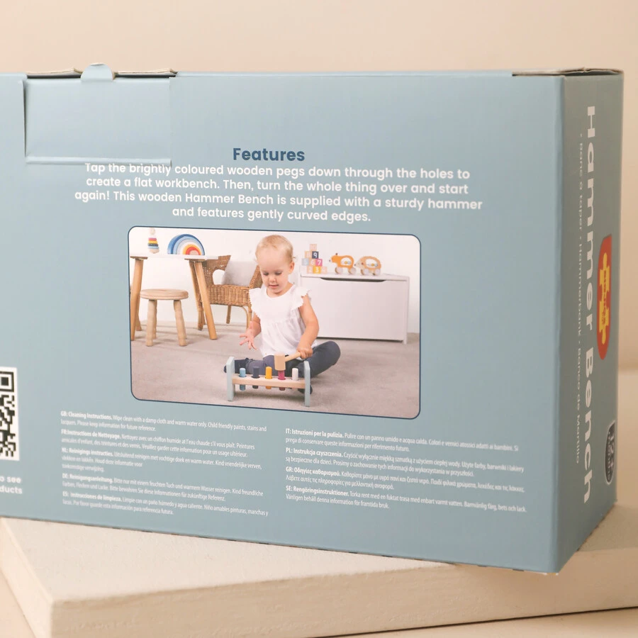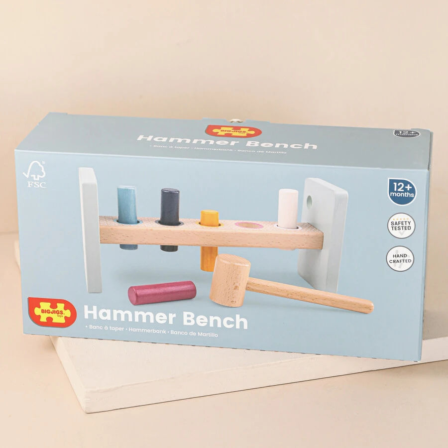 Help your little one develop vital skills with this fun wooden hammer bench set.