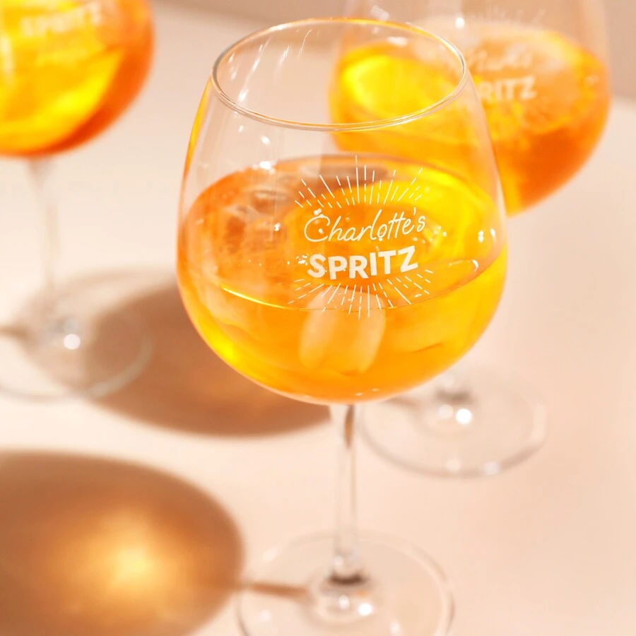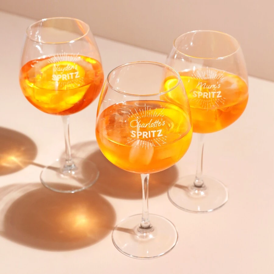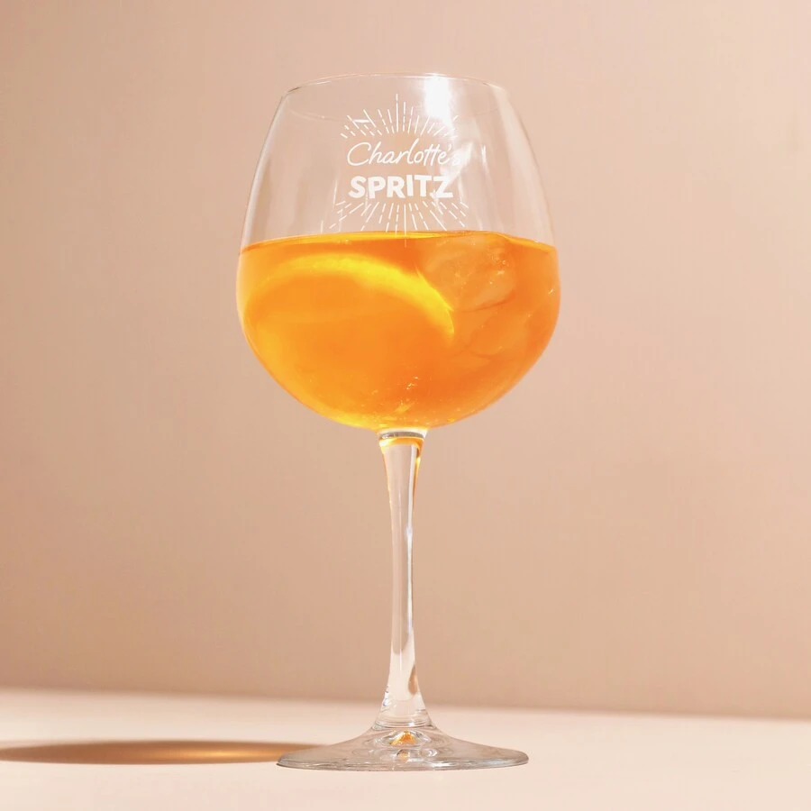 The side of the glass will be engraved with ‘(name)’s spritz’, with space for up to 12 characters.