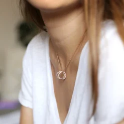 Personalised Sterling Silver Interlocking Crystal Rings Necklace