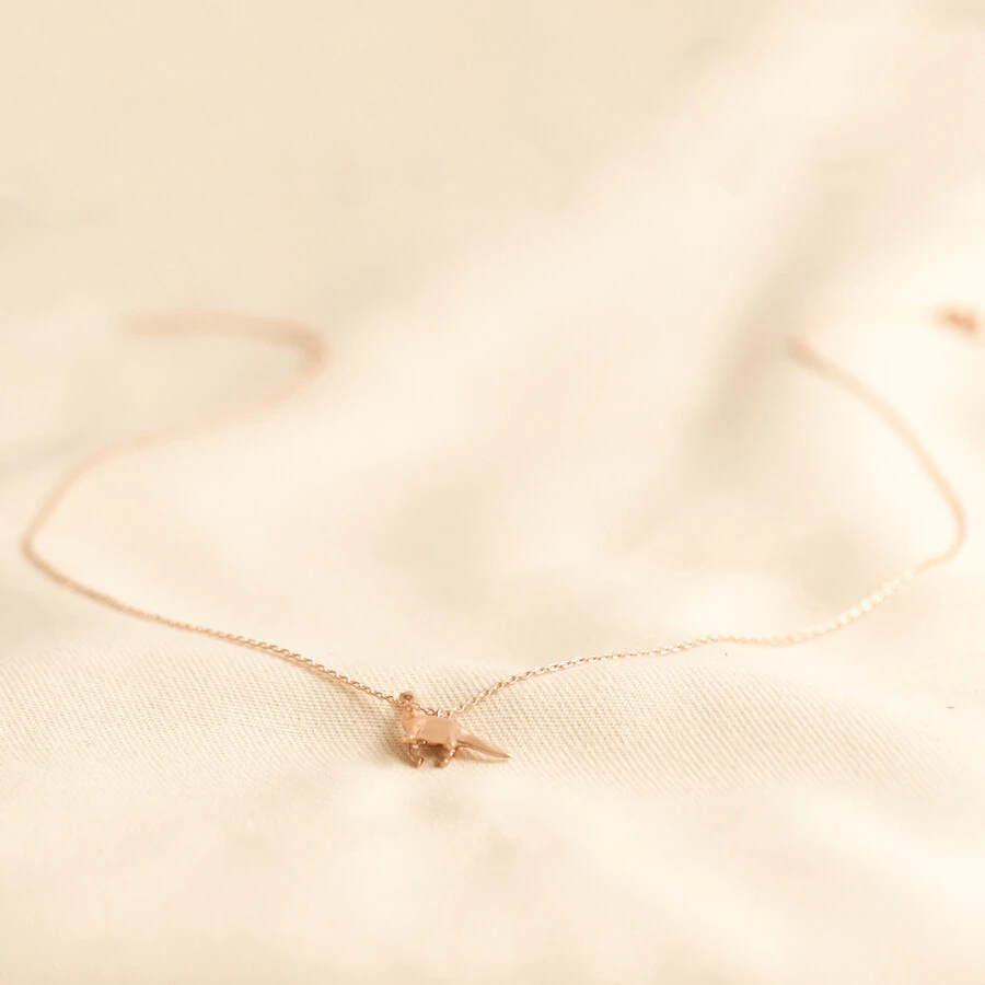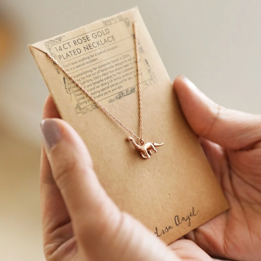 Featuring a delightfully tiny lightweight Diplodocus charm dangling from delicate trace chain, lovers of dinosaurs are going to adore this sweet charm necklace! This 18ct rose gold plated brass ladies’ pendant necklace with dino addition is a playful piece to add to any jewellery collection, and a particularly whimsical gift for a teen.