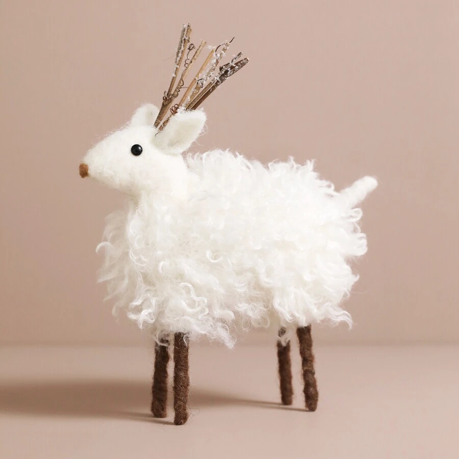 With four sturdy legs and wooden antlers, he can be placed on any table or shelf to add a little festive cheer to your day every time you catch a glance!