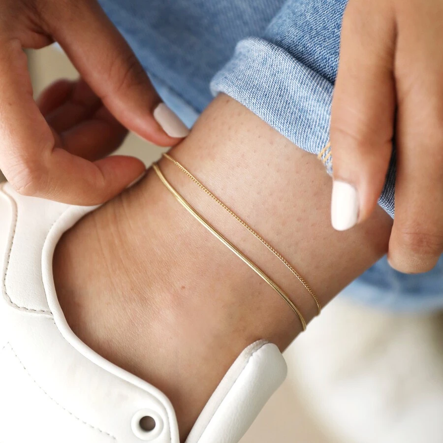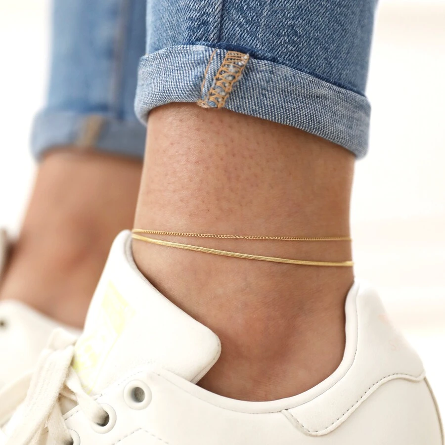 Elevate a simple outfit with this gorgeous gold double chain anklet.